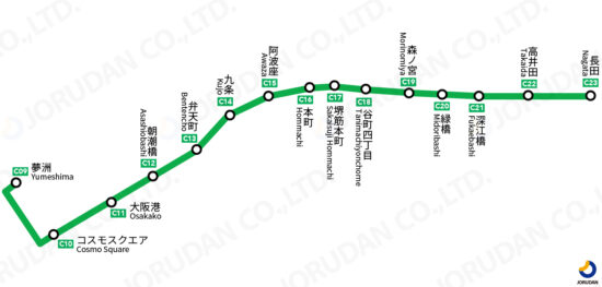 | 新大阪駅 | 約35分 | 本町駅で中央線に乗換 |