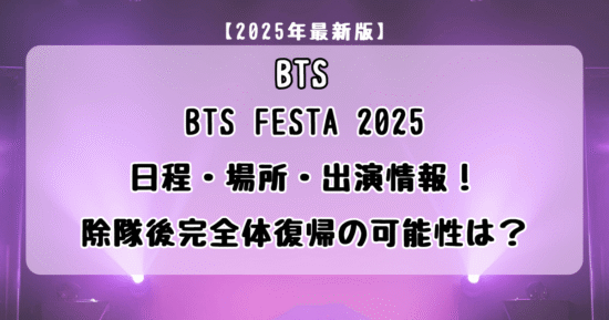 本記事では、BTS FESTA 2025の最新情報として、日程・開催場所・出演メンバーに関する確定事項を中心に、わかりやすく丁寧に解説します。