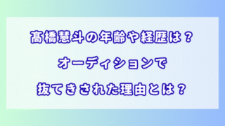 LDH 髙橋慧斗の年齢や経歴は?オーディションで抜てきされた理由とは? 2025年10月26日からスタートするテレビ朝日系特撮時代劇ドラマ『仮面の忍者 赤影』で、注目を集めているのが森蘭丸役を演じる髙橋慧斗さん。EXPG STUDIOに通う19歳の新星は、LDH主催のオーディションで見事この重要な役を射止めまし... 2025.10.23 LDH