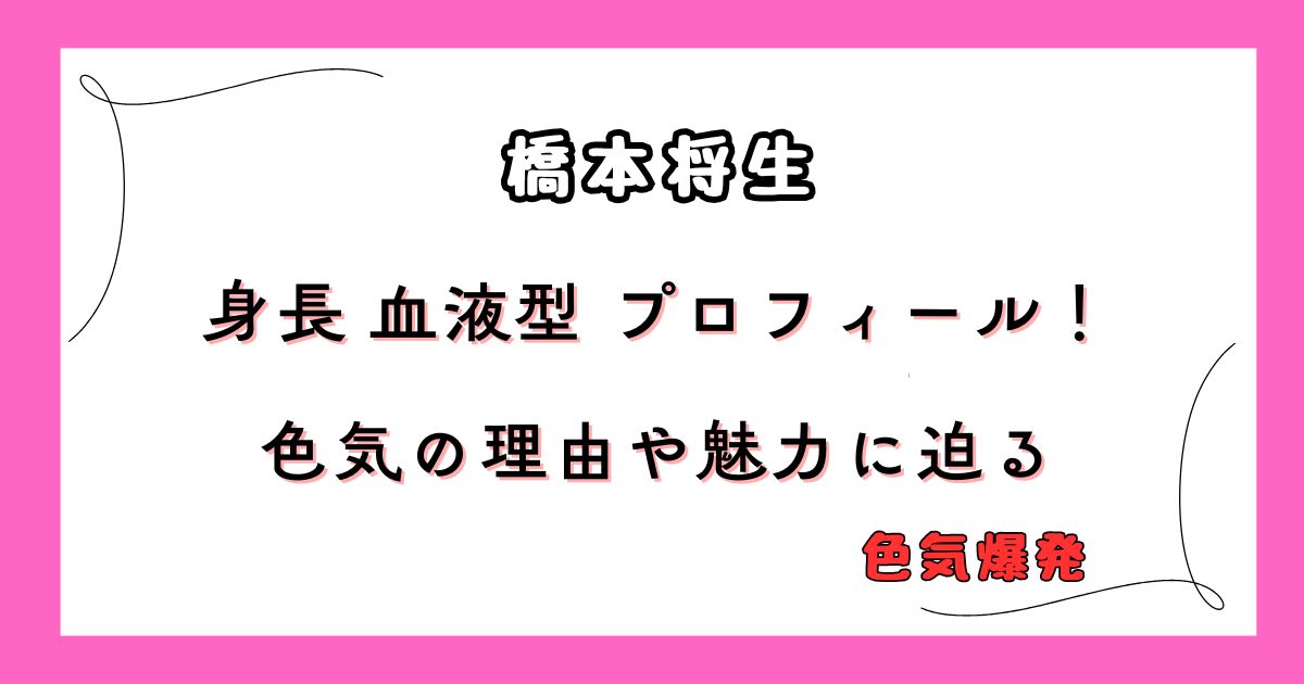 橋本将生ってどんな人?基本プロフィールまとめ