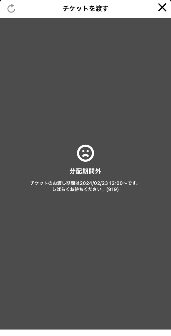 ⑭分配が完了しますと【チケット受け取り待ち】が表示されます。