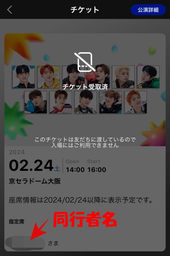 INI チケット受け取り方と同行者への分配方法について紹介しました。
