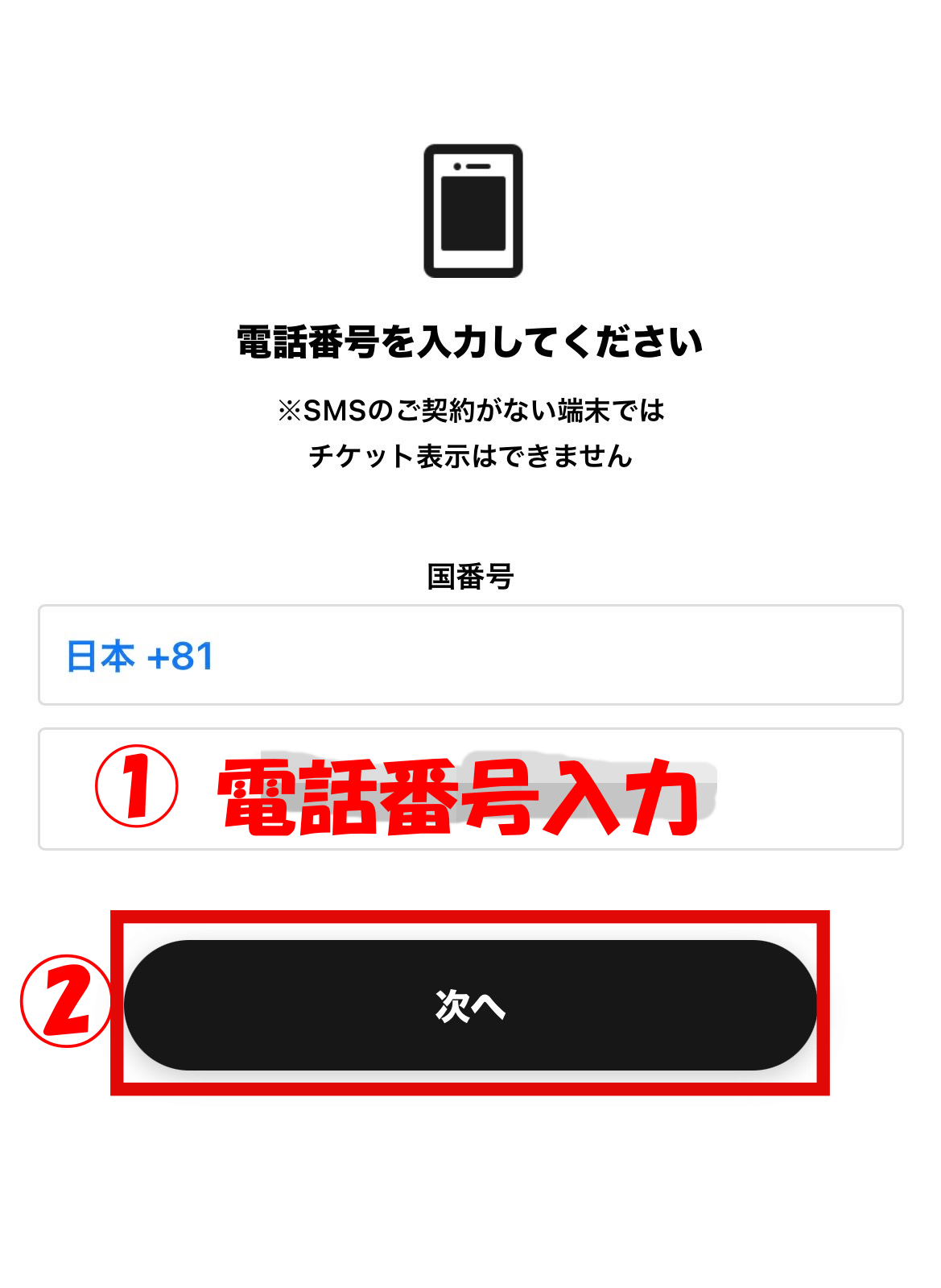 ③電話番号を入力し、次へをタップします。