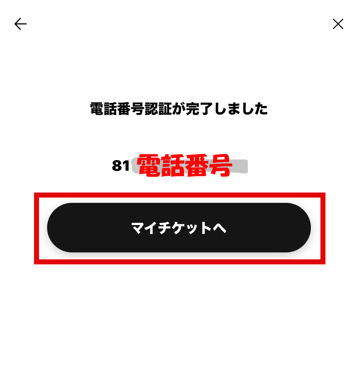 ⑤認証が完了しますと下記のような画面になりますので、マイチケットへ進みます。