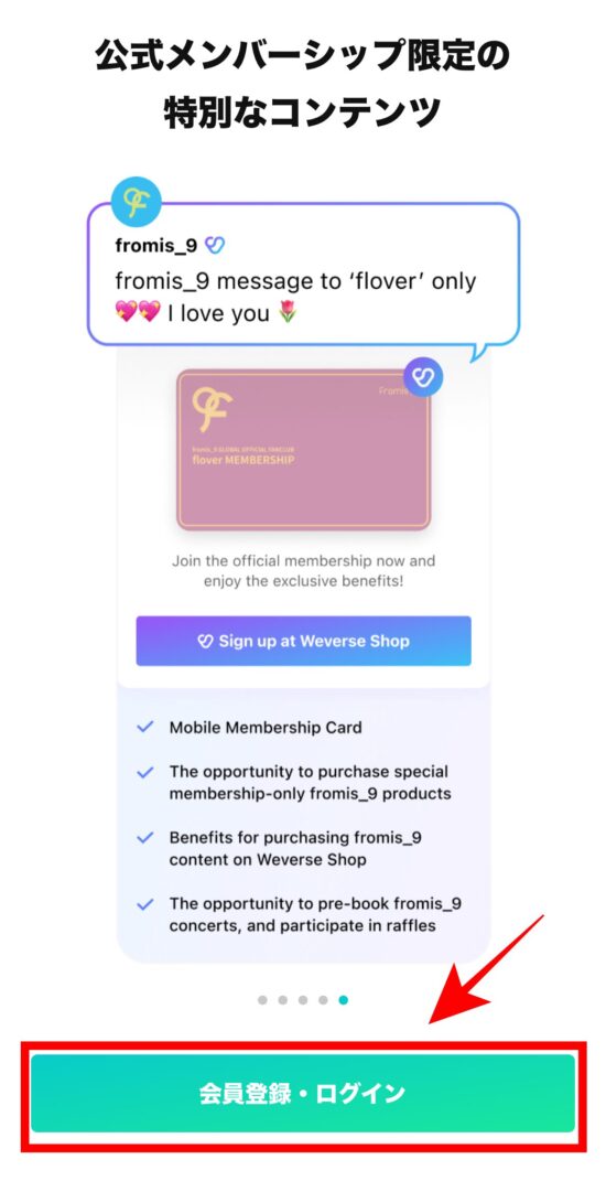 • Weverseでの限定コンテンツの閲覧や、メンバーが投稿する特別なメッセージ、写真、動画など、一般公開されないコンテンツにアクセスすることができます。