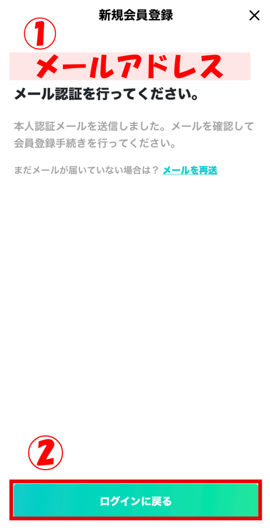 メールアドレス宛に本人認証メールが届いてるので確認しましょう。