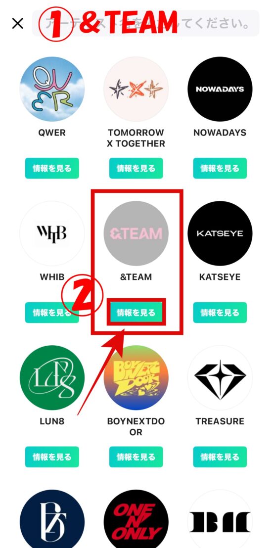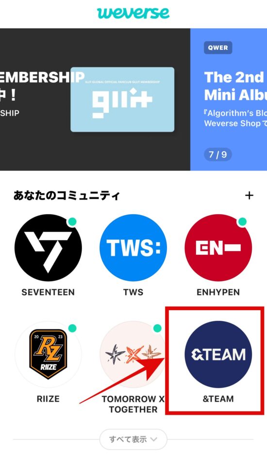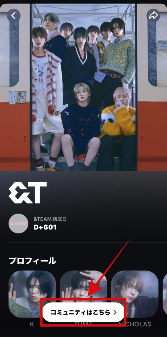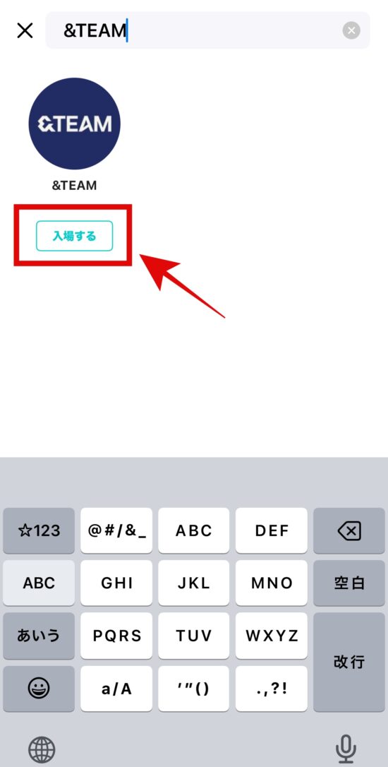 入っているコミュニティが表示されていますので、&TEAMに入場しましょう。&