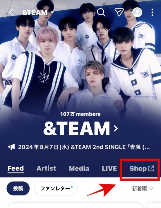 Weverse Shop内で&TEAMのコンテンツを先行公開で見られ、会員限定価格で購入できます。