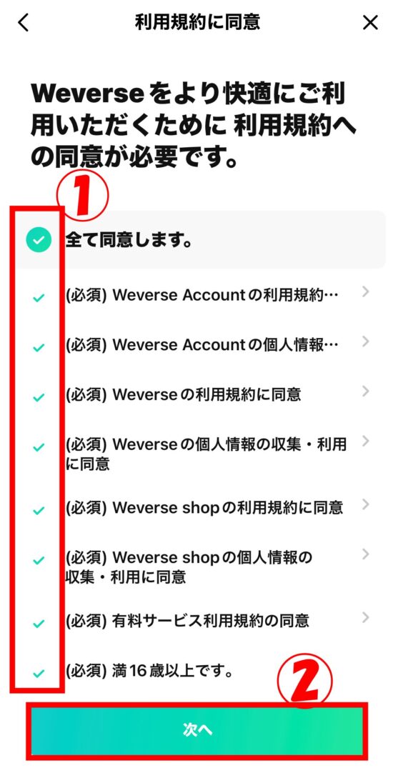 まず、Weverseアプリをダウンロードし、新規登録を行います。