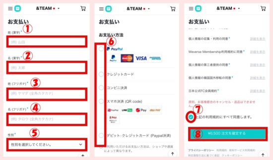 • ⑦【上記の利用規約にすべて同意します。】に✔