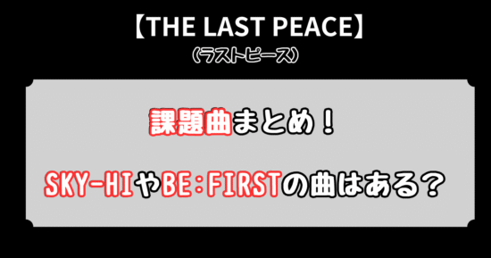 【THE LAST PIECE(ラスピ)】オーディションにSKY-HI、BE:FIRST、MAZZELで使用された楽曲は以下のとおりです。
